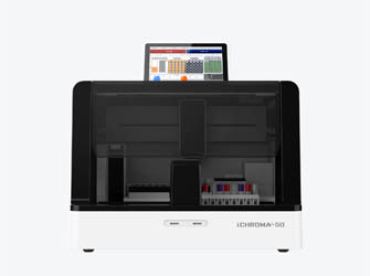 Automated Immunoassay Analyzer with blood collection tube, including all-in-one cartridge system.